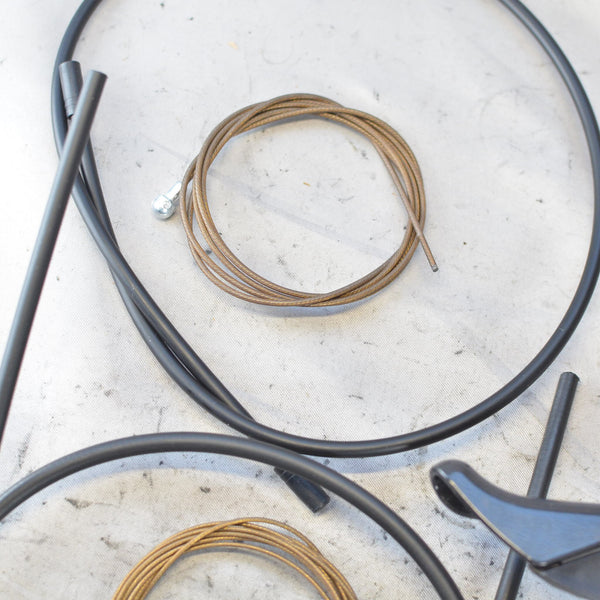 Brand new with inner polymer coated cables and outer cable housing as seen in photos. Ferrules/endcaps included. Left/front shifter only for double drivetrains.