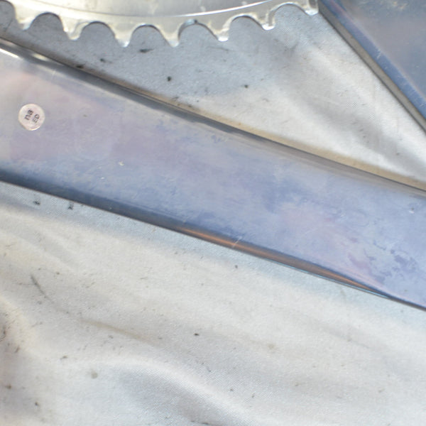 Teeth show some wear but with life left to go. Perhaps 50% life left on the large ring, more on the small. Cosmetically shows typical signs of typical use as seen in photos!
