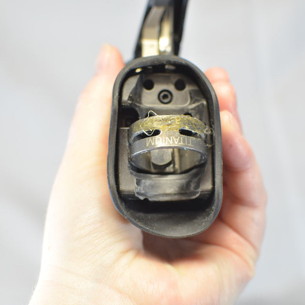 Has some road rash and with it small tear in the hood, otherwise typical signs of use like light scratching. Functions perfect, no shifting issues, nice and tight with no slop.
