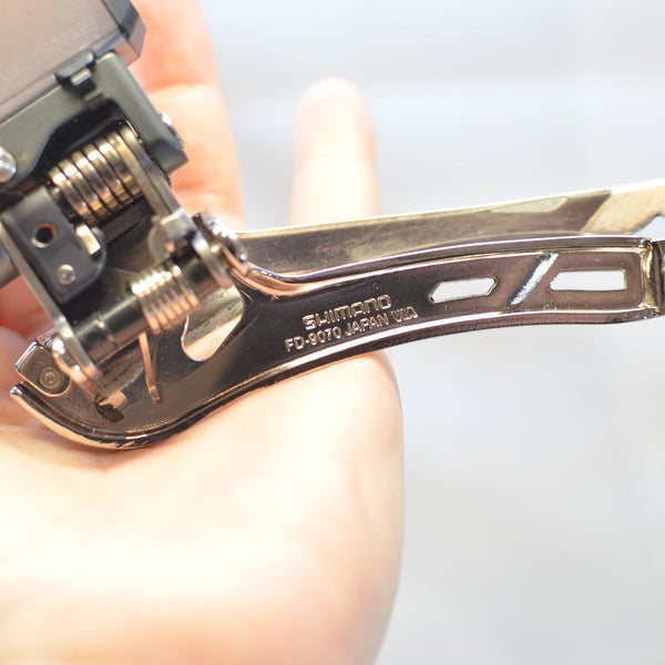 Dura Ace electronic Di2 double front derailleur.