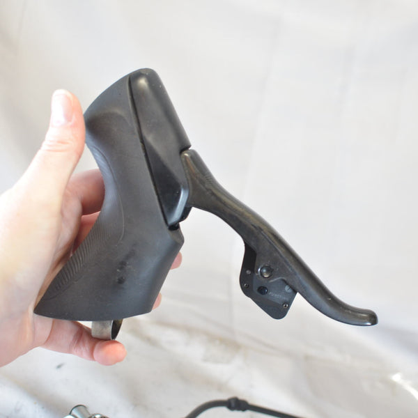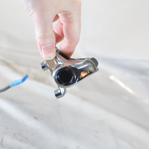 Left shifter only, 2 speed HRD eTap electronic wireless front shifter to control a double, with hydraulic brake caliper. Hood is brand new as well as the pads in the caliper!